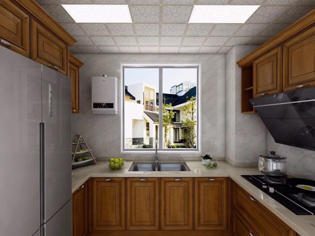 厨房油烟机、燃气社采用的是高端品牌——老板品牌,这两件套,功能强大,市场价格不菲!就连厨房内的橱柜也内藏乾坤,全部原木定制,台面采用石英石面材。